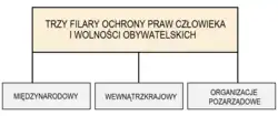 Międzynarodowa ochrona wolności obywatelskich opiera się na trzech filarach, które stabilnie utrzymują dzieło ochrony praw człowieka. Są to: