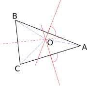 - Punkt przecięcia się symetralnych boków trójkąta jest środkiem okręgu opisanego na tym trójkącie.