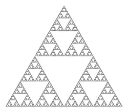 - symetria osiowa – przekształceniem jest odbicie zwierciadlane figury względem zadanej prostej zwanej osią symetrii. Symetria osiowa występuje m.in. w trójkącie Sierpińskiego.