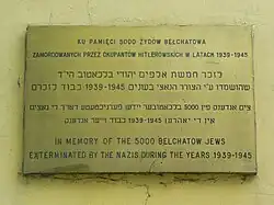 Naprzeciwko na budynku domu kultury przy ulicy Narutowicza znajduje się odsłonięta w 1989 roku tablica pamiątkowa o treści: „Dla uczczenia pamięci 5.000 Bełchatowskich Żydów zamordowanych przez nazistów w latach 1939-1945”.