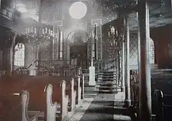 Na parterze mieściła się główna sala modlitewna, która była przeznaczona dla mężczyzn. Po jej bokach umieszczono babiniec dla kobiet, do którego wiodło osobne wejście[8][12].