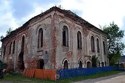 - Współczesny wygląd synagogi – przez wyłom w murze widoczna bima