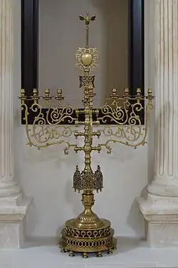 Do dnia dzisiejszego nie zachowała się stylizowana, altanowa, kuta bima zwieńczona koroną na Torę. Została ufundowana przez Samuela Barzela w 1787 roku. Oprócz bimy w synagodze znajdował się bardzo bogaty ruchomy sprzęt liturgiczny oraz dekoracje m.in. dziewięcioramienna chanukija, puszki bractwa pogrzebowego, ozdobne świeczniki z orłami, pozłacane, srebrne korony, hafty synagogalne z pierwszej połowy XVIII wieku oraz inne. Na sufitach wiszą wielkie zrekonstruowane żyrandole.