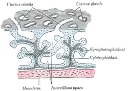 Syncytiotrofoblasty wydzielają progesteron i gonadotropinę kosmówkową. hCG zapobiega inwolucji ciałka żółtego. Dopóki syncytiotrofoblasty nie wydzielają wystarczająco dużo progesteronu (około 4. miesiąca), resztę potrzebnego hormonu zapewnia ciałko żółte ciążowe.