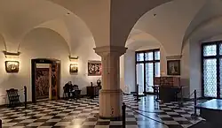 Obecne wyposażenie sali utrzymane jest w stylu renesansowym i manierystycznym. Wśród obrazów niderlandzkich: Święta Rodzina pędzla Jana van Hemessen (po 1548), Niesienie Krzyża oraz Ukrzyżowanie Nicolasa Bruyna mł. (szkoła dolnoreńska), Venitas pędzla Bartholomeusa Sprangera (ok. 1600) i Sąd Ostateczny z warsztatu Hieronima Boscha. Meble z XVI i XVII wieku: francuskie (kredensy, stół) oraz włoskie (krzesła). Naczynia kamionkowe nadreńskie (XVI I XVII stulecie) oraz moździerze apteczne.