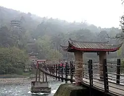 - Fulonguan – Świątynia Poskromienia Smoka (lit. D), pochodząca pierwotnie III w.n.e., zbudowana ku czci Fan Changshenga, patriarchy taoistycznej sekty Tianshi. W okresie Pięciu Dynastii zbudowano w niej halę poświęconą Li Bingowi. Legenda mówi, że jego syn poskromił w tym miejscu smoka, stąd zmiana nazwy świątyni. Smok w starożytnych Chinach był wiązany z żywiołem wody, więc Li Bing i Erlang w pewnym sensie „poskromili smoka” regulując kapryśną dotąd rzekę Min.