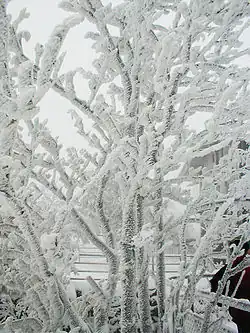 - Szadź na drzewie. Zdjęcie zrobiono od strony osiadania szadzi