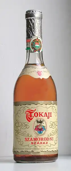 Butelka wina szamorodni – zgodnie z przepisami - musi być typu tokajskiego. Rzeczywista zawartość alkoholu wynosi 12%.