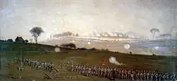 - ↑ Coddington (s.502) twierdzi, że bombardowanie zakończyło się o godz. 15, Hess (s.162), że około 14, Wert (s.182), że ostrzał trwał od 45 minut do dwóch godzin lub dłużej, przy czym największe natężenie nie trwało więcej niż godzinę, bowiem konfederatom brakowało amunicji. Sears (s.415) uważa, że bombardowanie zakończyło się o 14.30.