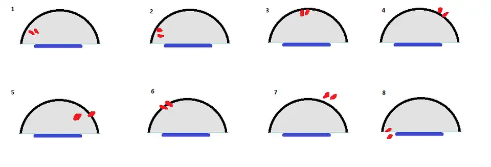 Zgodnie z przepisami FIBA, w latach 2010-2014 uznawano, że tylko zawodnik na rysunku nr 1 znajduje się wewnątrz obszaru półkola podkoszowego - w pozostałych jest na zewnątrz. Od 1 października 2014 na wszystkich rysunkach poza nr 7 uznaje się, że zawodnik znajduje się wewnątrz półkola podkoszowego, a tylko na rysunku nr 7 - na zewnątrz.
