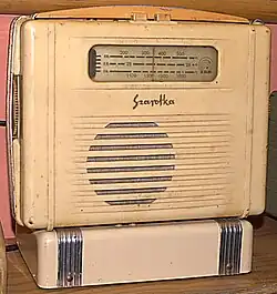 Szarotka – praktycznie pierwszy przenośny polski radioodbiornik lampowy.