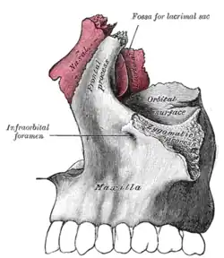 Na powierzchni przedniej trzonu szczęki poniżej otworu oczodołowego znajduje się niewielkie wgłębienie, zwane dołem nadkłowym. We wnętrzu szczęki znajduje się zatoka szczękowa wypełniona powietrzem[1]. Pojemność tej zatoki wynosi ok. 24 cm3.