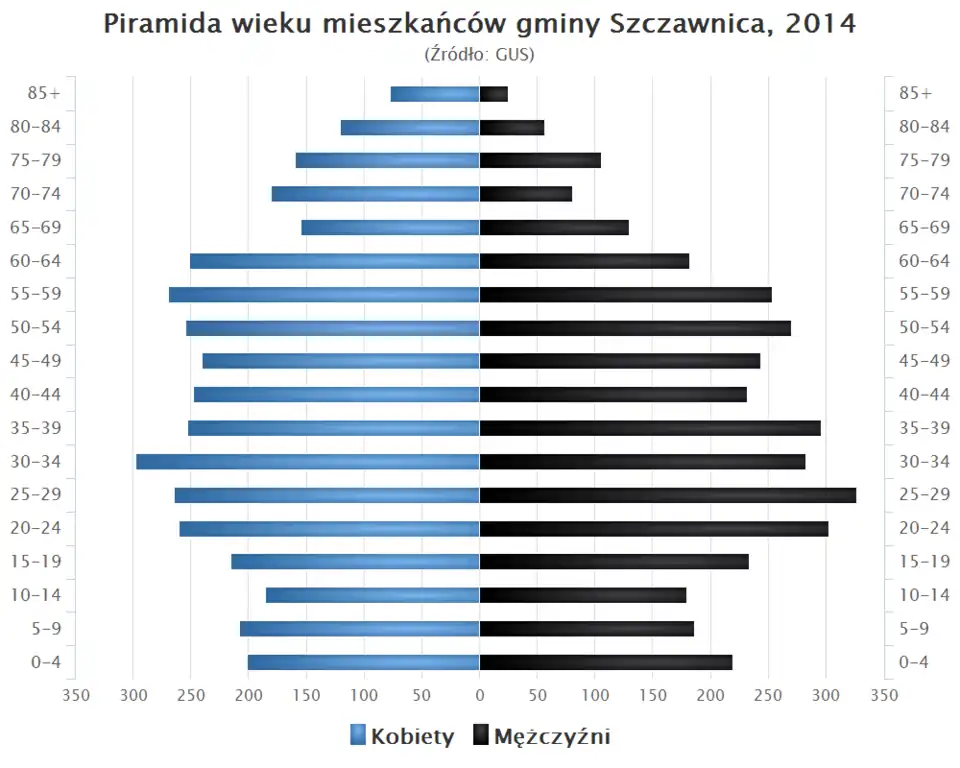 - Piramida wieku mieszkańców gminy Szczawnica w 2014 roku[1].