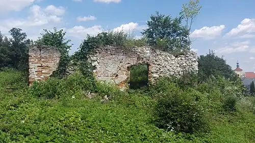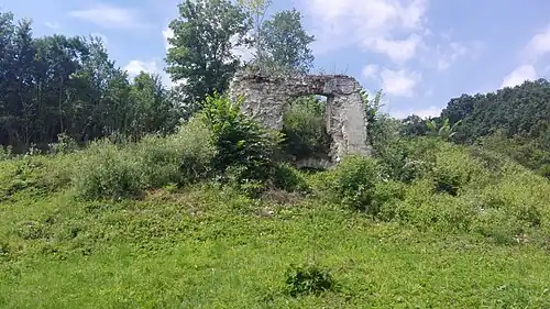 - ruiny zamku z XIV w.[29] – ruiny wieży zamkowej z drugiej połowy XIV w., przebudowanej w XVI w. Początki zamku łączy się z Dymitrem z Goraja. Po ślubie z jego córką, zamek w latach 1462–1515 należał do wojewody Jana Tarnowskiego. W 1507 roku na zamku odbył się sejmik ziemi chełmskiej. W 1515 r. zamek objęli Kurozwęccy i Kmitowie, a w 1555 r. dekretem sejmowym przejęli go wielkopolscy Górkowie. W 1583 roku zamek spaliła okoliczna szlachta. W 1593 r. od spadkobierców Górków odkupił zamek hetman Jan Zamoyski. Głównym budynkiem zamku była kamienna czworoboczna wieża o trzech kondygnacjach z renesansową dekoracją i boniowanymi narożami, którą dawniej otaczały drewniane zabudowania gospodarcze oraz palisada[30][31]. Obecnie jest to teren prywatny.