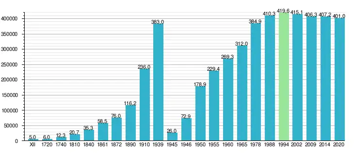 - ↑ Tabela 2. W: Leszek Kosiński: Pochodzenie terytorialne ludności ziem zachodnich w 1950 r.. T. Zeszyt 2. Warszawa: Polska Akademia Nauk Instytut Geografii, 1960.