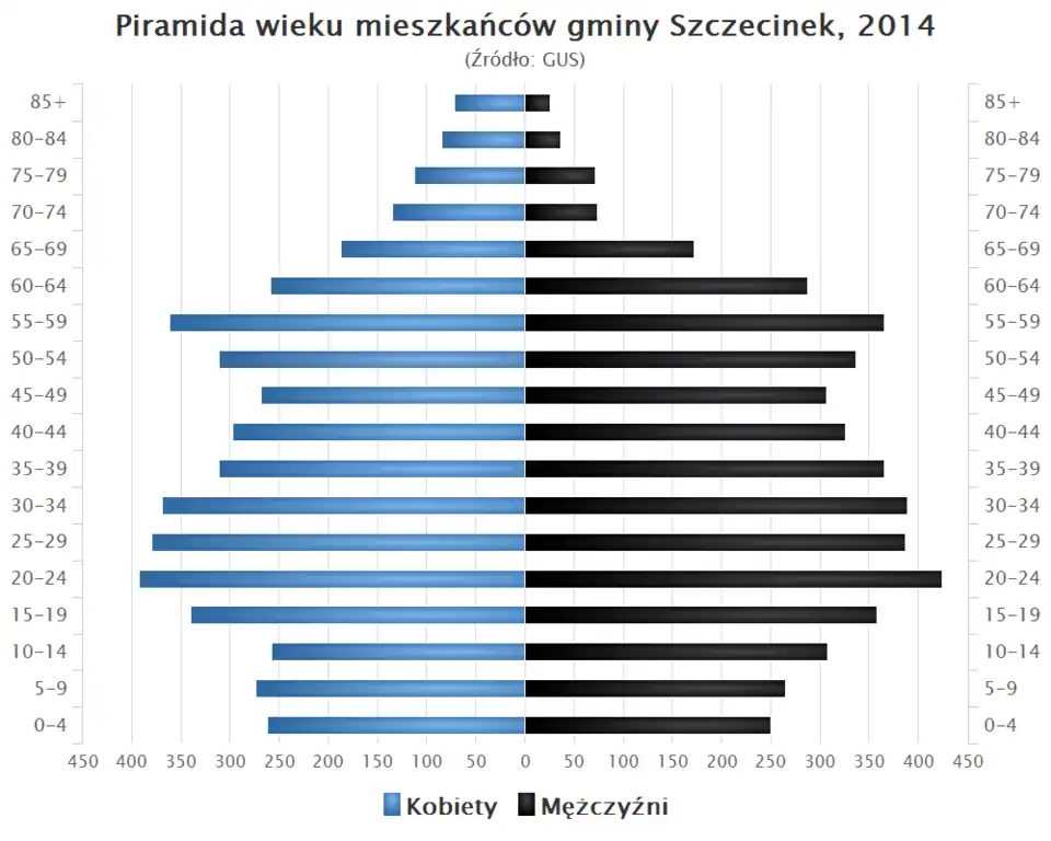 - Piramida wieku mieszkańców gminy Szczecinek w 2014 roku[3].