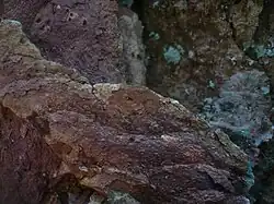 Rozpostarty, płaski, pokryty kolcami. Powierzchnia jasnobrązowa[3]. Starsze owocniki stają się ciemniejsze, niemal czarnobrązowe i przerastają korę[4]. Z wiekiem staje się także coraz bardziej twardy i popękany. Brzeg nieco włóknisty. Osiąga wielkość do 15 cm[5].