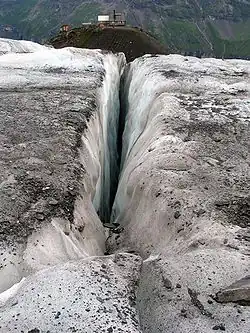 Szczelina lodowcowa – pęknięcie lub uskok tworzące się w wyniku pękania lodowca, spowodowanego przez jego ruch ponad wybrzuszeniami i uskokami podłoża.