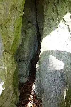 Szczelina powstała w wapieniach górnej jury. Nie ma w niej nacieków, a na dnie znajduje się wapienny rumosz, gleba i liście. Jest widna, sucha i w całości poddana oddziaływaniom atmosferycznym. Na ścianach rozwijają się glony[1].