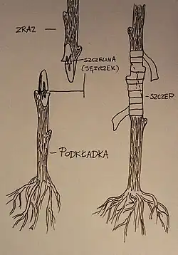 Cięcia należy wykonać za pomocą specjalnego noża zwanego szczepakiem, który powinien być bardzo ostry i czysty. Cięcia powinno dokonać się jednym pociągnięciem, aby powierzchnia cięcia była możliwie najgładsza. Istotne jest, aby powierzchnia cięcia nie została zabrudzona, gdyż może to utrudnić lub uniemożliwić zrastanie się zraza z podkładką, z powodu zarażenia.