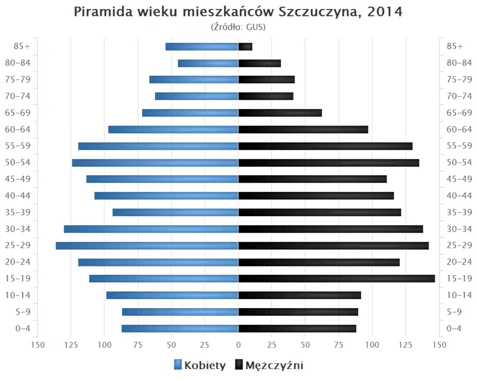 - Piramida wieku mieszkańców Szczuczyna w 2014 roku[17].