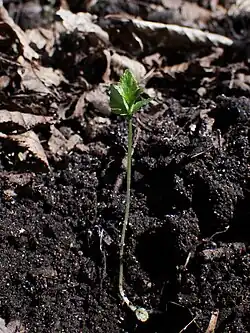 Sprzyja temu gatunkowi udział w drzewostanie gatunków o liściach ulegających szybkiej dekompozycji (np. wiązów), podczas gdy dominacja dębów, których liściasta ściółka utrzymuje się do wiosny w stanie słabo rozłożonym, ogranicza siłę jego wzrostu[5].