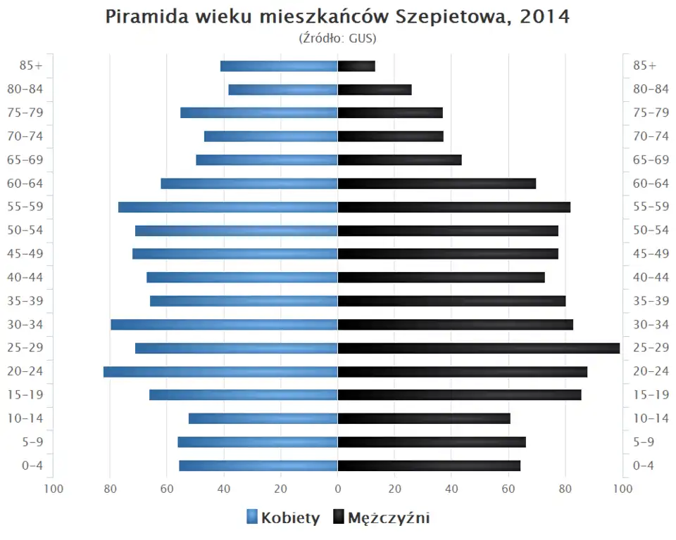 - Piramida wieku mieszkańców Szepietowa w 2014 roku[13].