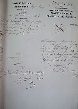 - ↑ Zarząd wojennego naczelnika ciechanowiecko-wysoko-mazowieckiego rejonu 1863, korespondencja wójtów gmin z naczelnikiem woj. w sprawie powstańców. (2018-02-18).