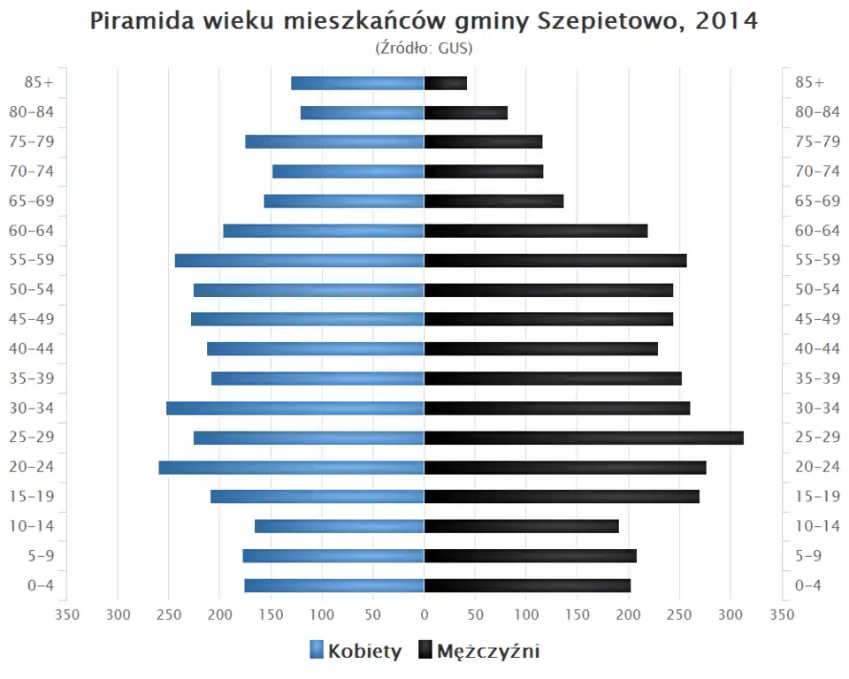 - Piramida wieku mieszkańców gminy Szepietowo w 2014 roku[1].