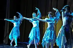 • szermierka sceniczno-pokazowa – nurt ten ma bogatą tradycję w wielu kulturach; można wymienić tu tańce z bronią: Zulusów, Maorysów, podhalańskich zbójników, środkowo-azjatyckie i kaukaskie tańce z szablami, grecki taniec pyrriche, grupy pokazowe występujące w Europie już od średniowiecza i prezentujące widzom nieprawdopodobne układy szermiercze – walka nie jest więc de facto immanentnym składnikiem ćwiczenia szermierki