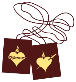 - dwa małe kawałki sukna z wyszytym imieniem Matki Bożej i Chrystusa, ew. ich wizerunkami, połączone tasiemkami, jeden noszony na piersi, drugi na plecach.