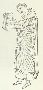 - wierzchnia część habitu w niektórych zakonach (karmelici, karmelici bosi, dominikanie, benedyktyni, cystersi, trynitarze, serwici) w postaci szerokiego płata materiału z otworem na głowę, takiego samego z jakiego uszyta jest tunika i zazwyczaj w tym samym co ona kolorze. Szkaplerz okrywa barki oraz sięga na plecy i na piersi. W zakonach męskich na szkaplerz nakłada się pelerynkę z przyszytym do niej kapturem i płaszcz. Szkaplerza nie należy mylić z kukullą.