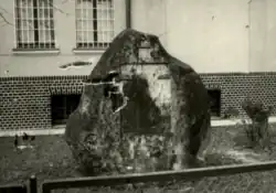 W 1922 roku przed budynkiem szkoły został odsłonięty kamień z tablicą upamiętniającą uczniów szkoły poległych w czasie I wojny światowej[4]. Po II wojnie światowej tablica upamiętniająca zachowała się tylko przez 2 lata. Na posiedzenia prezydium PRN w Braniewie w dniu 22 sierpnia 1947 podjęto w tym celu specjalną uchwałę o numerze 405, mówiącą o usunięciu inskrypcji w języku niemieckim z kamienia przed szkołą i od tego czasu pozostaje on pusty[8].