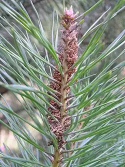 - Anthonomus varians Payk. – kwieciak sosnowiec, larwa żeruje w męskich kwiatostanach.