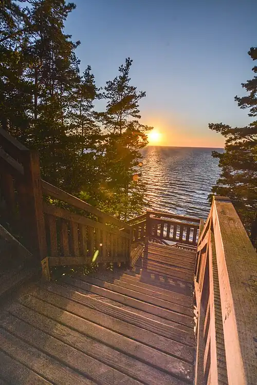 Oznaczone odgałęzienie od szlaku prowadzi do otwartych w lipcu 2013 roku, najdłuższych na polskim wybrzeżu schodów na plażę – prowadzące z klifu Kawczej Góry, liczące 267 stopni schody mają długość 128,5 m i wysokość 51 m. Umożliwiają zejście ze szlaku na Szlak Nadmorski. 2 stycznia 2019 roku sztorm uszkodził podporę schodów, uniemożliwiając korzystanie z nich turystom[8][4].