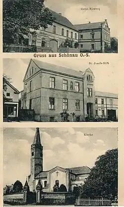 - ↑ Praca zbiorowa: Gemeindelexicon für die Regierungsbezirke Allenstein, Danzig, Marienwerder, Posen, Bromberg und Opplen Auf Grund der Ergebnisse der Volkszählung vom 1. Dezember 1910, Heft VI. Negierungsbezirk Oppeln. Berlin: Königlich preußischen Statistifchen Landesamte, 1912, s. 36.