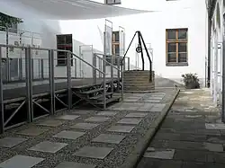 Jest to 1-piętrowy, 3-skrzydłowy budynek z barokową fasadą. Na jego narożniku znajduje się figura św. Rocha a w podworcu pomnik Kraka[2].