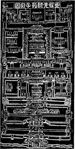 - lou (楼)– wielokondygnacyjny budynek spotykany tylko w zespołach pałacowych, otoczony tarasami na każdej kondygnacji,