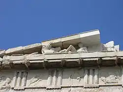 Nawiązującym do ówczesnych wydarzeń tematem dekoracji świątyni Nike Bezskrzydłej była wojna stoczona z Persami. Relief ukazywał przygotowania do ofiary z okazji zwycięstwa i jej składanie. Rozwiązania zastosowane przy budowie Akropolu (zwłaszcza w układzie fryzów w Partenonie, Erechtejonie i świątyni Nike) naśladowali inni artyści.