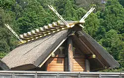Taki typ naturalnego budownictwa stał się wzorem dla architektury pierwszych chramów shintō z Wielkim Chramem Ise na czele. Jego wyniosłą, surową formę, podkreśla kryty strzechą dach oraz skrzyżowane ponad kalenicą skrajne krokwie (chigi). Inne, jak chram Izumo-taisha, naśladowały styl domostw naczelników szczepu. Obowiązkową cechę wszystkich chramów shintō stanowi brama torii, której najsłynniejszym przykładem jest ta z chramu Itsukushima.