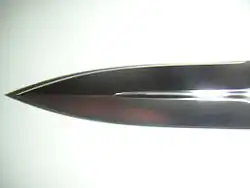 Potocznie sztychem określa się niekiedy „pchnięcie” przeciwnika ostrym końcem broni białej w trakcie walki. W języku niemieckim koniec głowni to der Ort[1].