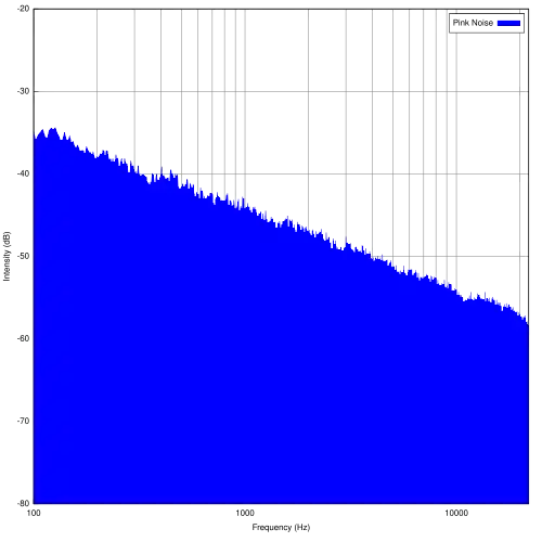 Widmowa gęstość mocy szumu różowego opada 10 dB na dekadę (ok. 3 dB na oktawę). Poziom ciśnienia akustycznego w kolejnych pasmach oktawowych jest zatem stały, co znajduje zastosowanie w badaniach i pomiarach akustycznych.