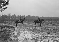Mijakowski i Rozdżestwieński twierdzą, że kawaleria KOP podzielona była na trzy grupy już w 1932[13]. - ↑ W 1938 nastąpił podział kawalerii KOP na szwadrony typu I, II i III. Szwadrony typu I stacjonowały poza m.p. dowództw batalionów KOP, szwadrony typu II stacjonowały w m.p. batalionów KOP. Typ III posiadał szwadron „Nowe Świeciany”[16].