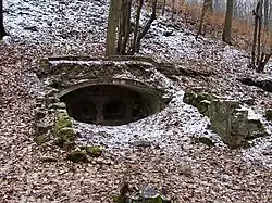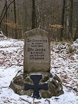 100 m na południowy wschód od Szwedzkiego Młyna, na niewielkim wzniesieniu cmentarzyk rodziny Jaeckel, z XIX w, właścicieli młyna. Zachowała się leżąca kamienna płyta nagrobna kobiety, Friederike Jaeckel 1790-1871 (od południowego zachodu) oraz skromny pomnik upamiętniający poległego 15 czerwca 1918 we Francji, Ottona Jaeckel (po stronie północno-wschodniej), pomiędzy nimi wysoki, metalowy krzyż.