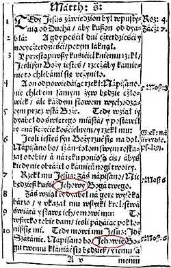 - ↑ W rzeczywistości Biblia brzeska, wbrew deklaracjom wydawców, była przekładem z łaciny i francuskiego. Zatem przekład Budnego to tak naprawdę pierwsze polskie tłumaczenie Biblii bezpośrednio z hebrajskiego i greckiego, zob. Rajmund Pietkiewicz, Pismo Święte w języku polskim w latach 1518–1638, s. 257.
