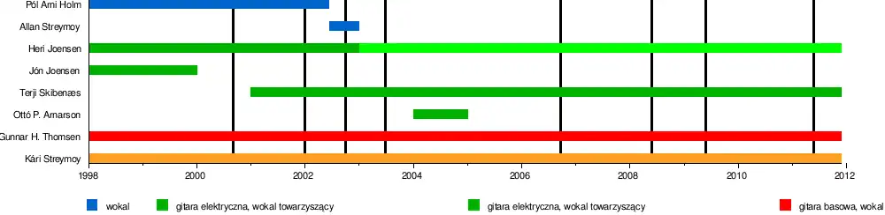 Terji Skibenæs przyłączył się, gdy Jón Joensen opuścił zespół. Allan Streymoy (brat Káriego) został wokalistą na czas wydawania singla Ólavur Riddararós. Po odejściu Allana Heri Joensen został wokalistą grupy.
