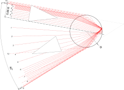 Kąt odchylenia uzyskuje najmniejszą wartość, gdy pochodna odchylenia względem kąta padania jest równa 0. Wówczas kąt padania dla promienia, który odbije się wewnątrz -krotnie, określony jest wzorem[4]: