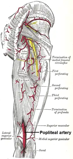 W swoim przebiegu tętnica podkolanowa oddaje następujące gałęzie boczne[1]: