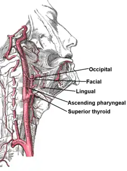 - tętnica gardłowa wstępująca (arteria pharyngea ascendens)