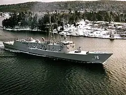 | przeciwokrętowe: 2 x RGM-84 Harpoon przeciwlotnicze: 9 x RIM-66E SM-1MR Block VI 1 armata uniwersalna Mk 75 kalibru 76 mm, CIWS: Phalanx 20 mm Block 15 Mod 0, 1 wyrzutnia pocisków rakietowych Mk 13 Mod 4 Block 6 | |